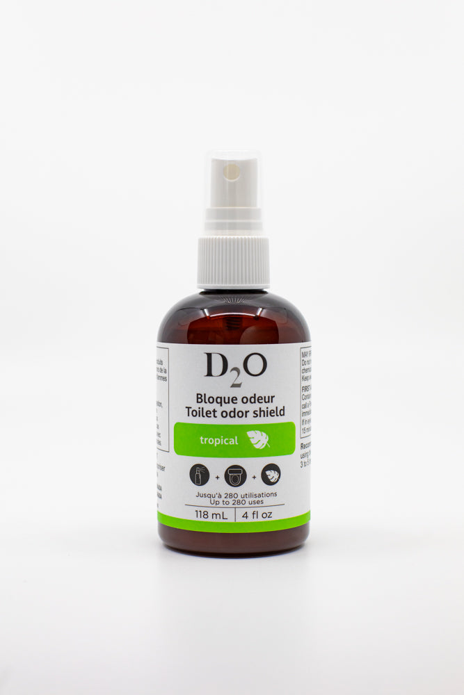 Discret, efficace et agréable, D2O Tropical est la solution idéale pour garder une salle de bain fraîche en tout temps, à la maison comme à l’extérieur.